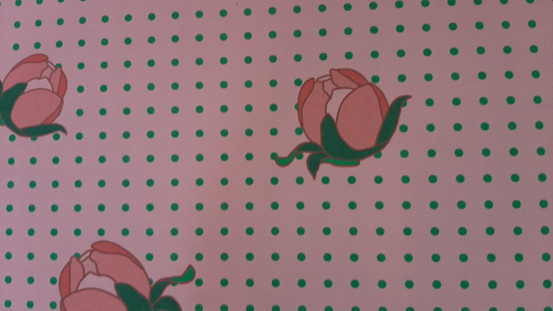 "Peony in Bud" wallpaper, in pink background.
